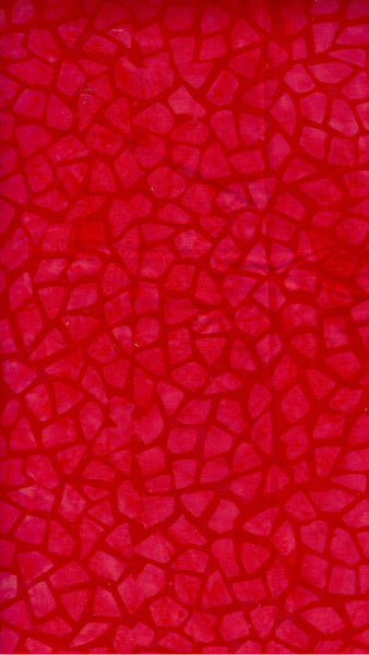 Floral design of Pale Red Mosaic Tiles on Mid Dark Red. Price per Fat Quarter. Hand dyed and wax stamped 100% cotton Batik Fabric 110 -115 cm.