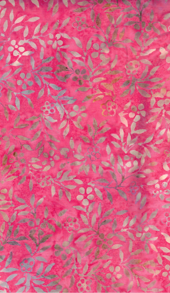 Floral design of Cream Tan Grey Floral Sprays on Mid Pink. Price per Fat Quarter. Hand dyed and wax stamped 100% cotton Batik Fabric 110 -115 cm.