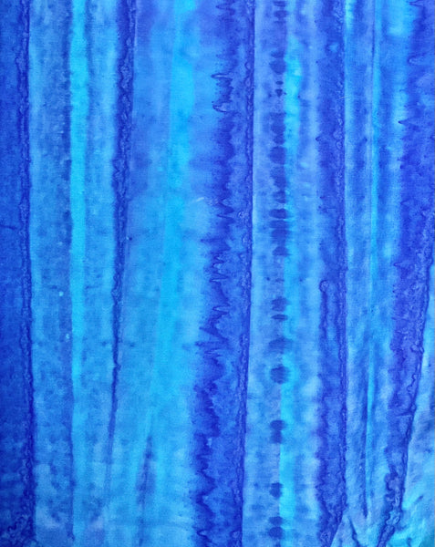 Aqua Turquoise Blue Stripe. Stripe runs crosswise from selvedge to selvedge of the bolt, ie. down the 0.25m width of a Skinny Quarter. A more regular stripe, great for landscape quilts as the Sky and oceanscape quilts as the background. Perfect for Hawaiian Quilts or large scale applique projects.